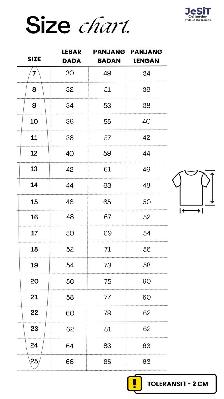 SERAGAM BATIK SD LAKI LAKI - Merk JeSiT Collection | 100% ORI Bahan : Katun Prima 40'S Kain Batik ORI JSIT Bahan Berkualitas Kelebihan Produk : 1. Model lengan Panjang 2. Motif batik khas JSIT mencerminkan identitas Sekolah Anggoat Jaringan Sekolah Islam Terpadu (JSIT) 3. Aksesoris eksklusif merk Jesit 4. Merk Jesit menjamin kualitas dan desain. Ukuran seragam laki laki: LD = Lebar Dada PB = Panjang Baju Toleransi Ukuran 1-3 cm 7 : LD 30 cm/ PB 49 cm/ PL 34 cm 8 : LD 32 cm/ PB 51 cm/ PL 36 cm 9 : LD 34 cm/ PB 53 cm/ PL 38 cm 10 : LD 36 cm/ PB 55 cm/ PL 40 cm 11 : LD 38 cm/ PB 57 cm/ PL 42 cm 12 : LD 40 cm/ PB 59 cm/ PL 44 cm 13 : LD 42 cm/ PB 61 cm/ PL 46 cm 14 : LD 44 cm/ PB 63 cm/ PL 48 cm 15 : LD 46 cm/ PB 65 cm/ PL 50 cm 16 : LD 48 cm/ PB 67 cm/ PL 52 cm 17 : LD 50 cm/ PB 69 cm/ PL 54 cm 18 : LD 52 cm/ PB 71 cm/ PL 56 cm 19 : LD 54 cm/ PB 73 cm/ PL 58 cm 20 : LD 56 cm/ PB 75 cm/ PL 60 cm 21 : LD 58 cm/ PB 77 cm/ PL 60 cm 22 : LD 60 cm/ PB 79 cm/ PL 62 cm 23 : LD 62 cm/ PB 81 cm/ PL 62 cm 24 : LD 64 cm/ PB 83 cm/ PL 63 cm 25 : LD 66 cm/ PB 85 cm/ PL 63 cm Diluar ukuran tersebut bisa hubungi admin ya kak Kelebihan TOKO : 1. Produk dijamin original dan berkualitas unggul. 2. Pelayanan pelanggan responsif dan siap membantu, memastikan pengalaman belanja yang memuaskan 3. Untuk pemesanan custom harus minimal pembelanjaan selusin. 4. Tersedia toko offline.